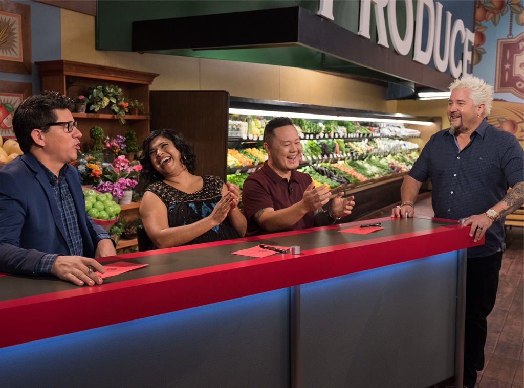 In Santa Rosa California Grocery Games takes place in a 15000-square-foot warehouse. Challenges include making a gourmet entrée out of favorite snack foods as chosen by Guys son. Carl Ruiz Troy Johnson Aarti Sequeira.